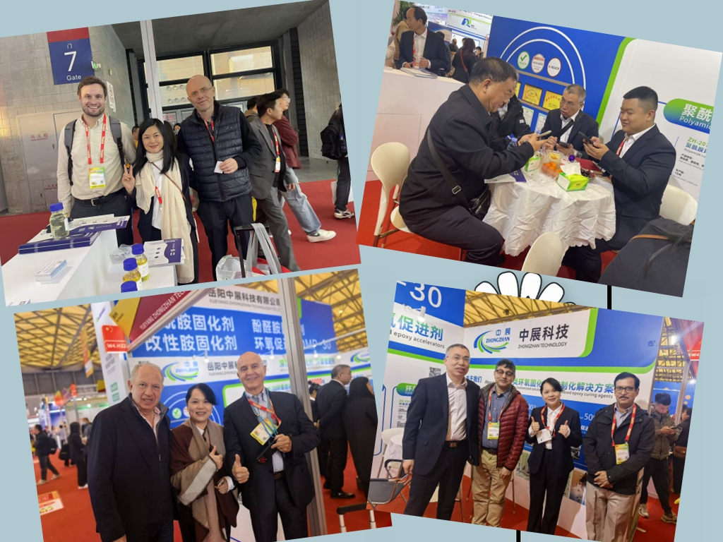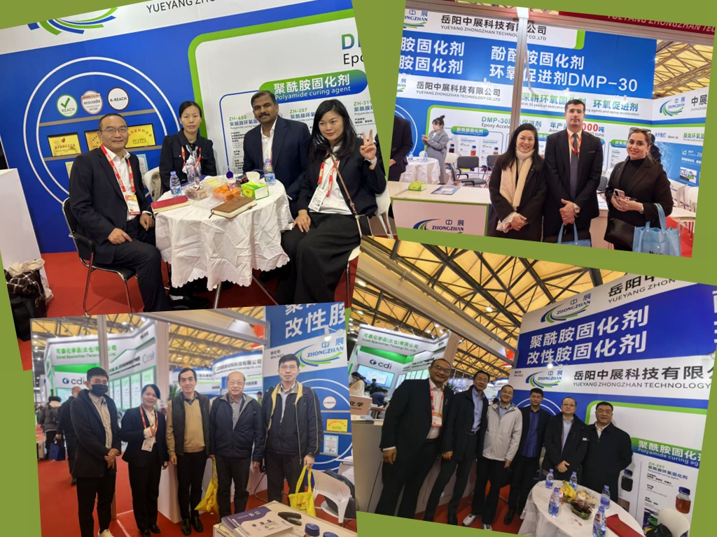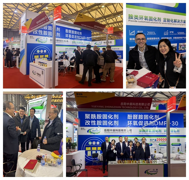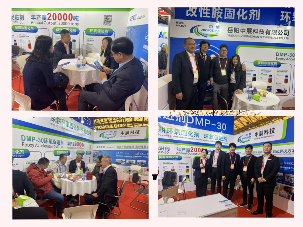 在這場行業(yè)盛會上,岳陽中展科技的展位始終保持著超高人氣,成為眾多國內(nèi)外客商關注的焦點。本次參展,中展科技攜核心產(chǎn)品矩陣精彩亮相,涵蓋環(huán)氧促進劑、聚酰胺固化劑、酚醛胺固化劑、改性胺固化劑等多款高性能產(chǎn)品,全面展現(xiàn)了企業(yè)在涂料助劑領域的研發(fā)實力與產(chǎn)品競爭力。其中,公司自主研發(fā)生產(chǎn)的環(huán)氧促進劑DMP-30憑借其純度高、性能穩(wěn)定、適配性強等突出優(yōu)勢,成為展位的“明星產(chǎn)品”,不僅贏得了國內(nèi)涂料及膠粘劑企業(yè)的高度認可,更吸引了大量海外客商駐足咨詢。來自韓國、日本、阿聯(lián)酋、巴基斯坦、印度、伊朗、俄羅斯、巴西、墨西哥等幾十個國家的外國友商紛紛來到展位,與中展科技的業(yè)務團隊深入交流產(chǎn)品特性、應用場景及合作模式,現(xiàn)場達成多項初步合作意向,洽談氛圍十分火爆。